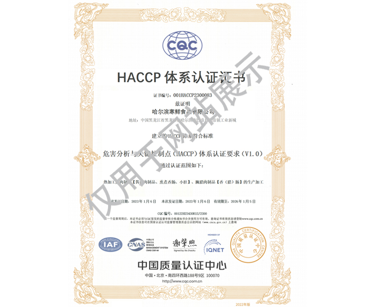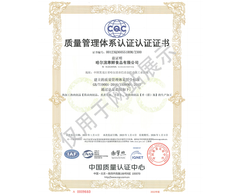 2016年公司通過(guò)了中國(guó)質(zhì)量認(rèn)證中心的質(zhì)量管理體系(ISO9001)和食品安全管理體系(ISO22000)認(rèn)證;2017年已取得國(guó)家進(jìn)出口企業(yè)認(rèn)證;是中國(guó)肉類協(xié)會(huì)會(huì)員單位,黑龍江省肉類協(xié)會(huì)副會(huì)長(zhǎng)單位;2017年,公司產(chǎn)品經(jīng)中國(guó)綠色食品發(fā)展中心審核,被認(rèn)定為綠色食品A級(jí)產(chǎn)品;被省畜牧獸醫(yī)局確定為全國(guó)生豬屠宰標(biāo)準(zhǔn)化創(chuàng)建示范企業(yè)(全國(guó)僅6家)。2018年12月,被評(píng)定為市級(jí)農(nóng)業(yè)產(chǎn)業(yè)化重點(diǎn)龍頭企業(yè)。2019年1月,被評(píng)定為省級(jí)農(nóng)業(yè)產(chǎn)業(yè)化龍頭企業(yè)。