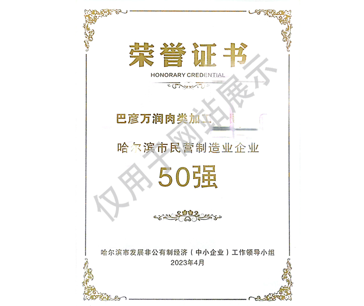 2016年公司通過了中國質(zhì)量認(rèn)證中心的質(zhì)量管理體系(ISO9001)和食品安全管理體系(ISO22000)認(rèn)證;2017年已取得國家進(jìn)出口企業(yè)認(rèn)證;是中國肉類協(xié)會會員單位,黑龍江省肉類協(xié)會副會長單位;2017年,公司產(chǎn)品經(jīng)中國綠色食品發(fā)展中心審核,被認(rèn)定為綠色食品A級產(chǎn)品;被省畜牧獸醫(yī)局確定為全國生豬屠宰標(biāo)準(zhǔn)化創(chuàng)建示范企業(yè)(全國僅6家)。2018年12月,被評定為市級農(nóng)業(yè)產(chǎn)業(yè)化重點(diǎn)龍頭企業(yè)。2019年1月,被評定為省級農(nóng)業(yè)產(chǎn)業(yè)化龍頭企業(yè)。