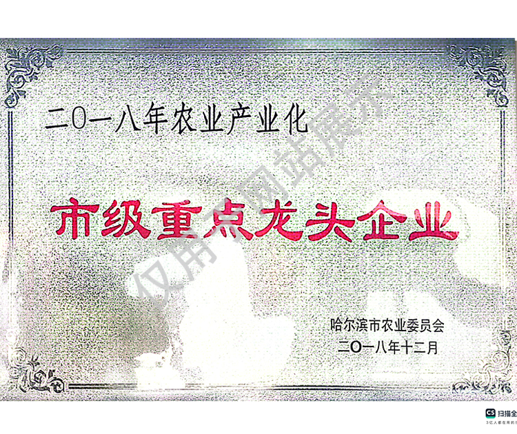 2016年公司通過了中國質(zhì)量認證中心的質(zhì)量管理體系(ISO9001)和食品安全管理體系(ISO22000)認證;2017年已取得國家進出口企業(yè)認證;是中國肉類協(xié)會會員單位,黑龍江省肉類協(xié)會副會長單位;2017年,公司產(chǎn)品經(jīng)中國綠色食品發(fā)展中心審核,被認定為綠色食品A級產(chǎn)品;被省畜牧獸醫(yī)局確定為全國生豬屠宰標準化創(chuàng)建示范企業(yè)(全國僅6家)。2018年12月,被評定為市級農(nóng)業(yè)產(chǎn)業(yè)化重點龍頭企業(yè)。2019年1月,被評定為省級農(nóng)業(yè)產(chǎn)業(yè)化龍頭企業(yè)。