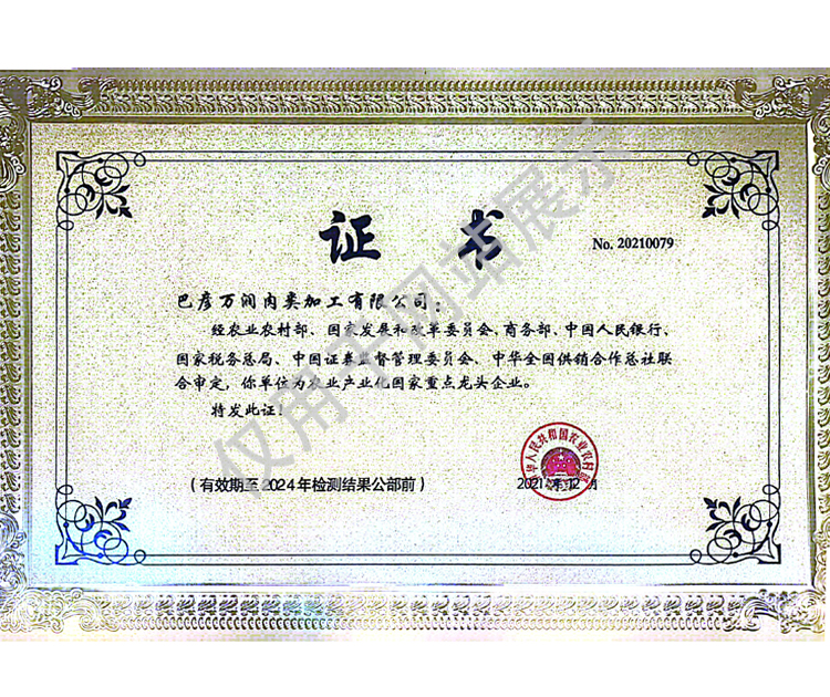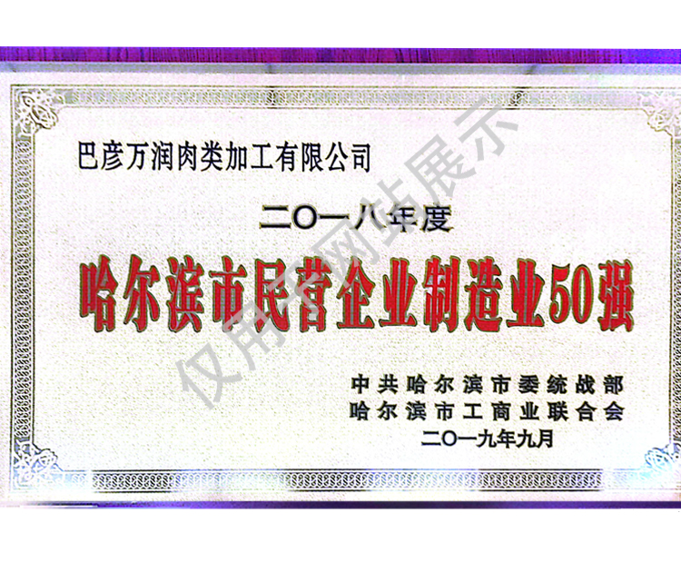 2016年公司通過了中國質(zhì)量認(rèn)證中心的質(zhì)量管理體系(ISO9001)和食品安全管理體系(ISO22000)認(rèn)證;2017年已取得國家進(jìn)出口企業(yè)認(rèn)證;是中國肉類協(xié)會會員單位,黑龍江省肉類協(xié)會副會長單位;2017年,公司產(chǎn)品經(jīng)中國綠色食品發(fā)展中心審核,被認(rèn)定為綠色食品A級產(chǎn)品;被省畜牧獸醫(yī)局確定為全國生豬屠宰標(biāo)準(zhǔn)化創(chuàng)建示范企業(yè)(全國僅6家)。2018年12月,被評定為市級農(nóng)業(yè)產(chǎn)業(yè)化重點(diǎn)龍頭企業(yè)。2019年1月,被評定為省級農(nóng)業(yè)產(chǎn)業(yè)化龍頭企業(yè)。